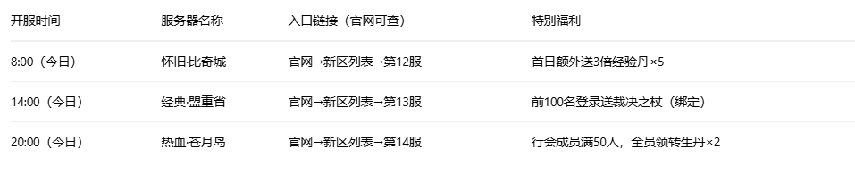 | 服务器名 | 服务器IP | 开区时间 | 线路类型 | 版本介绍 | 官网入口 |